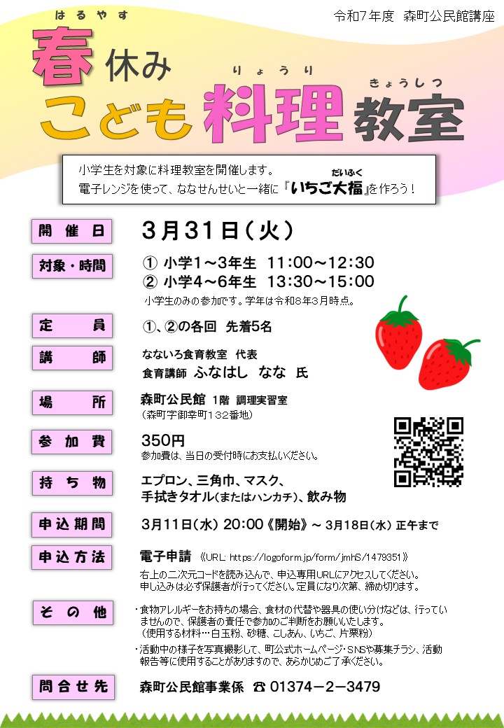 R7年度公民館講座「春休みこども料理教室」開催チラシ (PDFファイル: 238.9KB)
