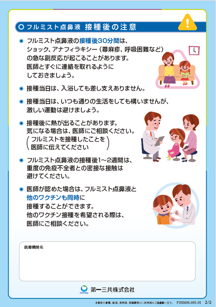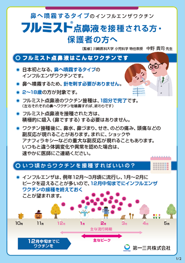 ※注意 フルミスト点鼻液接種希望者が一定数以上集まらなかった場合は接種日が変更になる可能性がありますので予めご了承下さい。