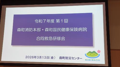 令和8年3月13日(金曜日)森町防災センターにおいて、森町消防本部と森町国民健康保険病院の合同研修会を開催しました。