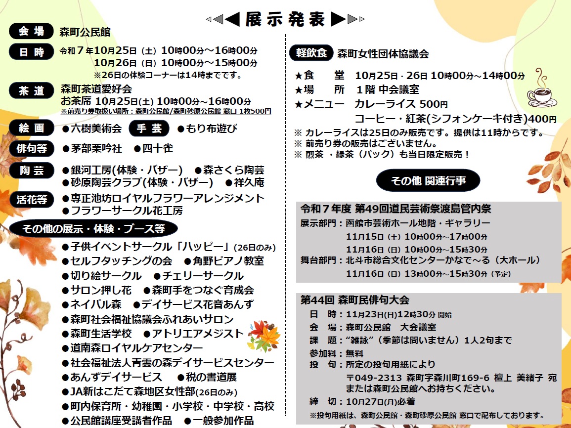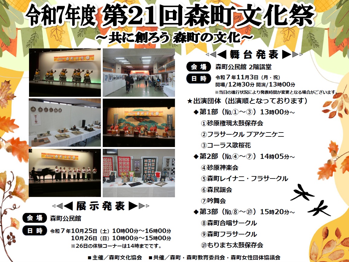 【10月17日更新】令和7年度 第21回森町文化祭の開催について