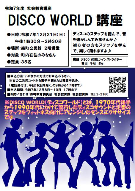 令和7年度 社会教育講座 DISCO WORLD講座 開催について