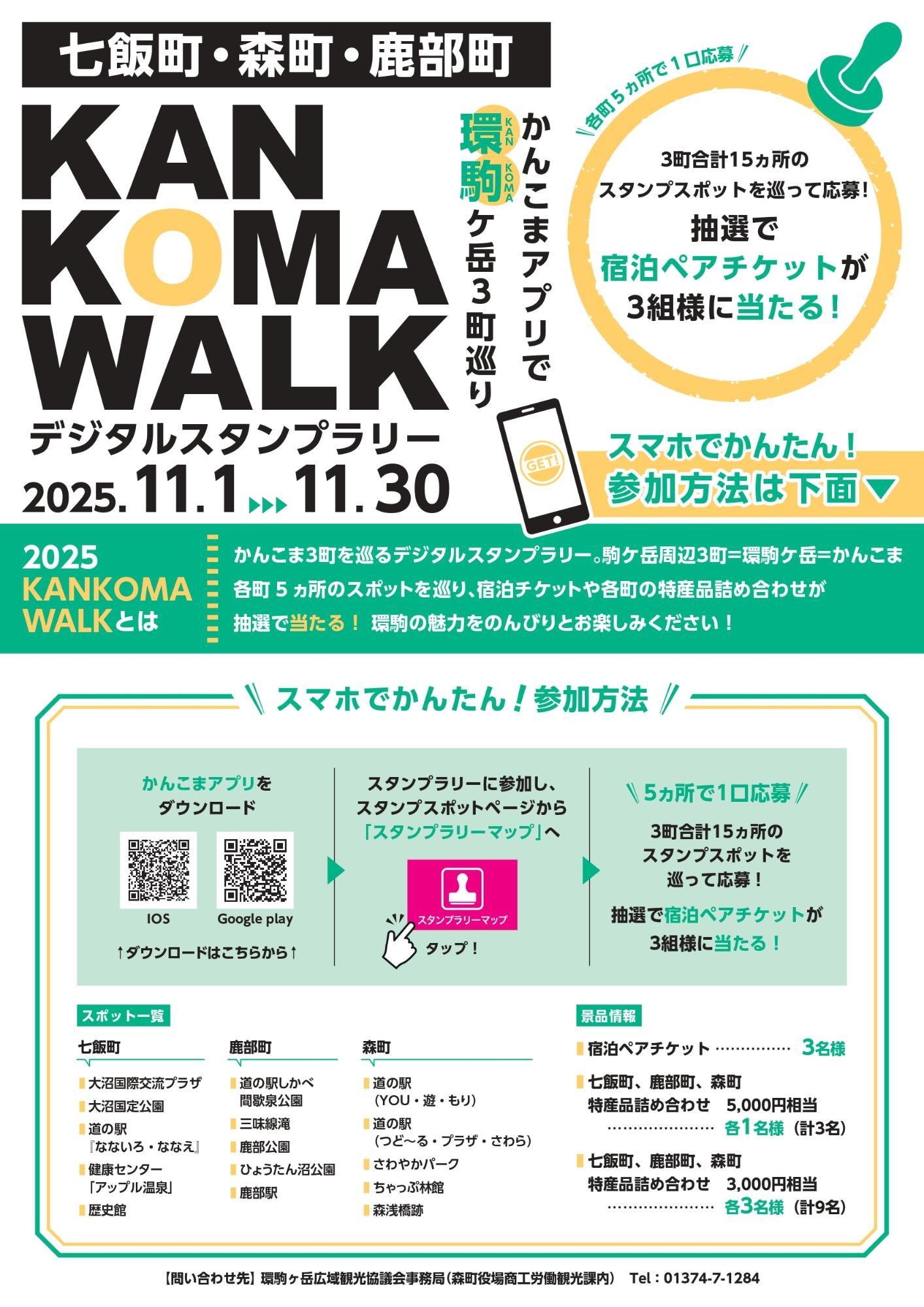 かんこま3町(森町・鹿部町・七飯町)を巡る、かんこまウォークデジタルスタンプラリーが開催されます!