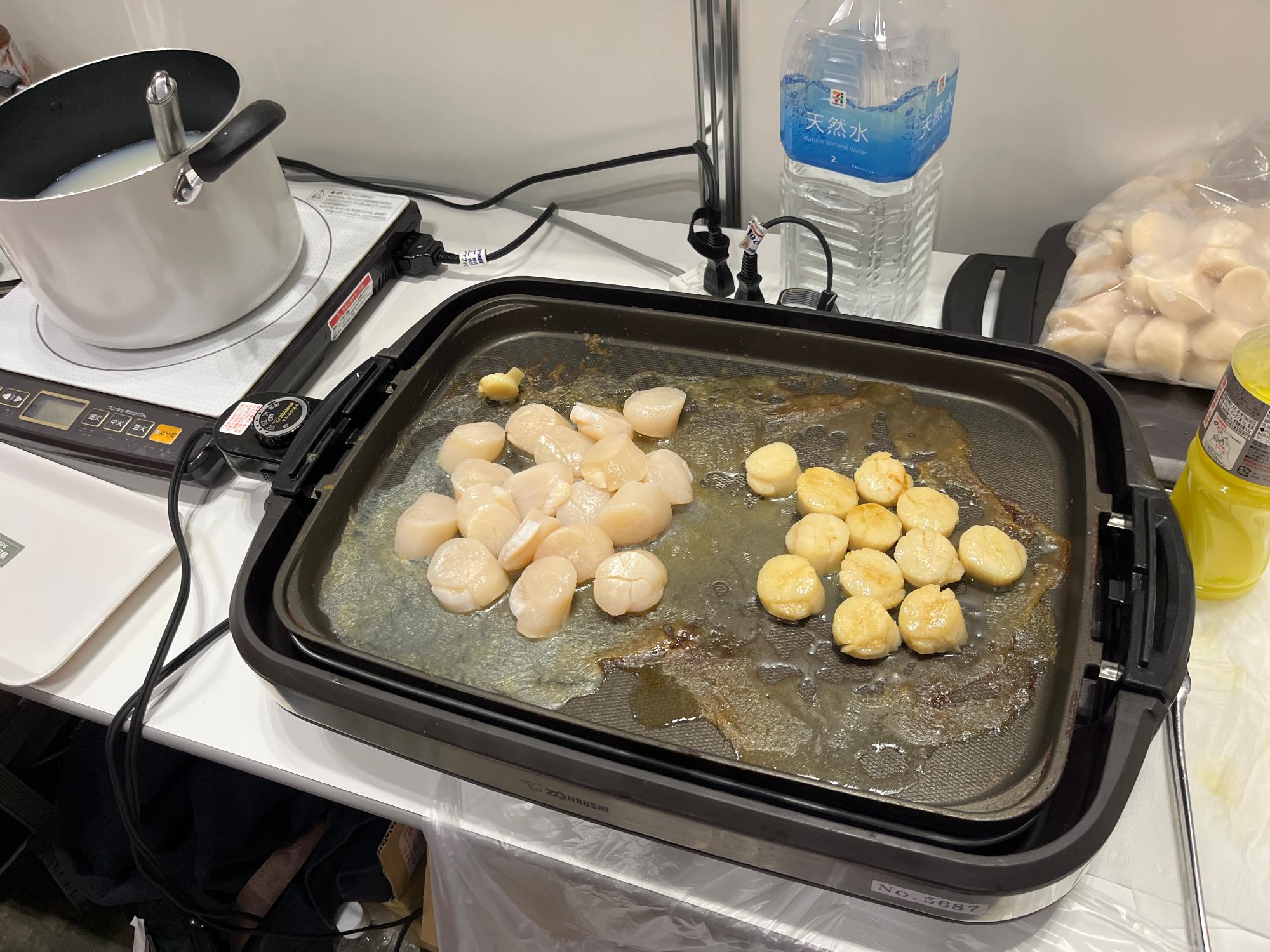 森町ブースでは「ホタテのバター焼き」の試食を行い、約1,200名の方に森町のホタテをお召し上がりいただき、森町のPRを行いました。整理券配布時には長蛇の列もできました。