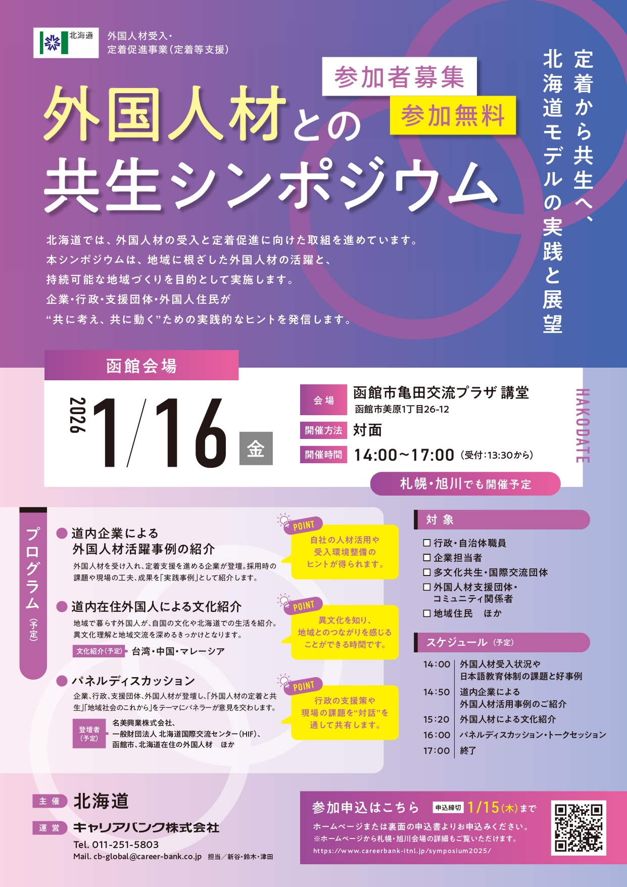 北海道主催「外国人材との共生シンポジウム」(運営:キャリアバンク株式会社)